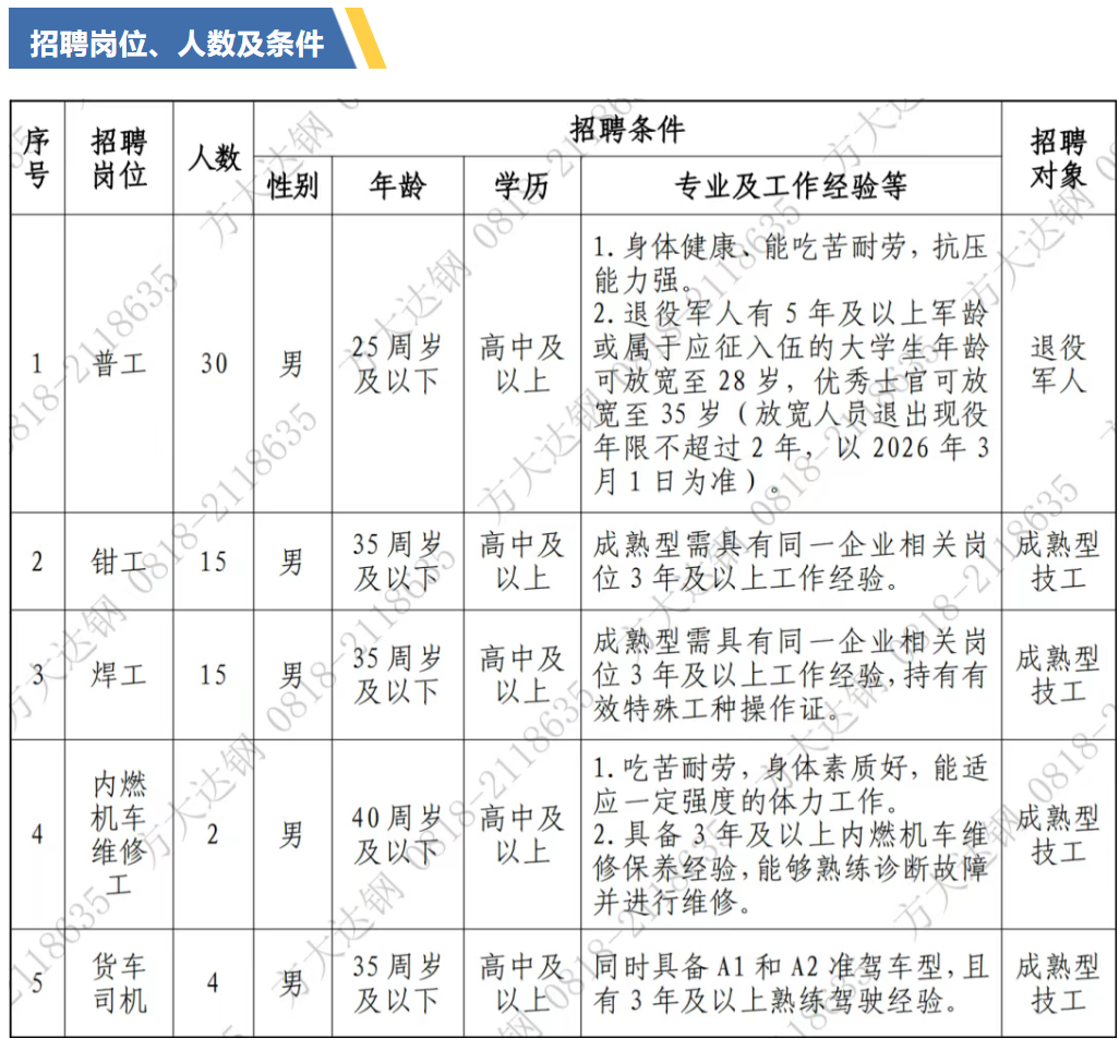 报名资格:请务必仔细对照所应聘岗位的招聘条件,逐一核对自身情况。若存在任一条件不符合要求,将视为资格不符,不予录用。